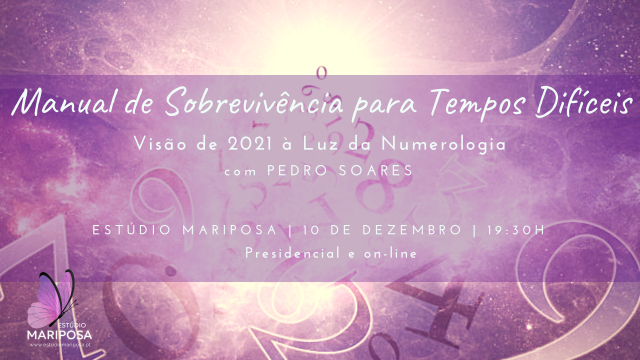 Manual de Sobrevivência para Tempos Difíceis - Visão de 2021 à Luz da Numerologia com Pedro Soares PRESENCIAL E ON-LINE Os números têm uma linguagem própria. As suas particularidades e características fazem com que vibrem numa determinada frequência pelo que, desde Pitágoras, têm sido utilizados como ferramenta de estudos cronológicos e psicológicos. Assim, cada novo ano é "tingido" pela energia e vibração de um determinado número, número esse que lhe vai conferir determinadas características, propostas e desafios. Conhecer a energia…